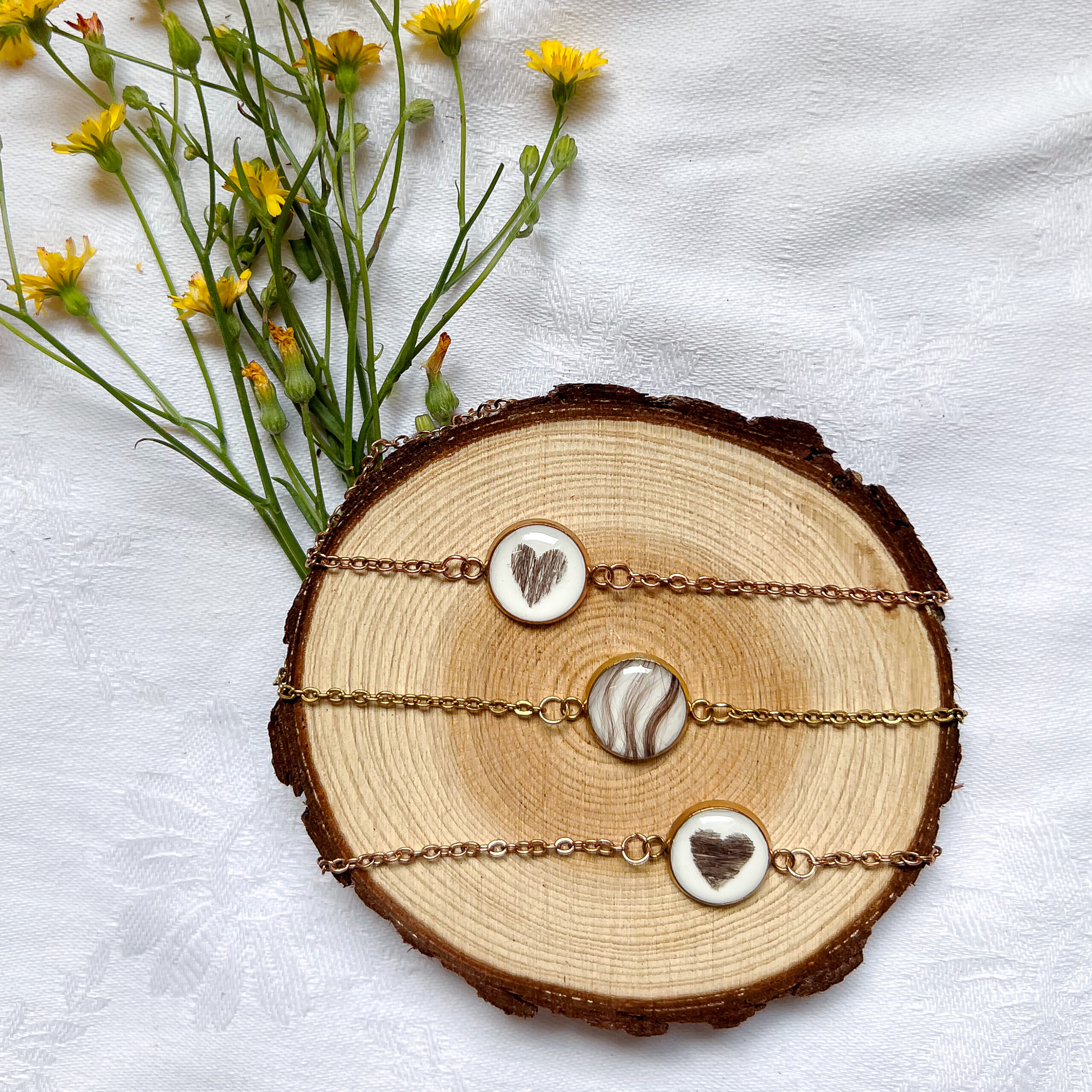 Dieses Armband wird aus Haaren, Asche, Krallen, Zähnen oder nach deinen persönlichen Wünschen handgefertigt und bewahrt die Erinnerung an dein Tier auf ganz besondere Weise. Jedes Schmuckstück ist ein liebevoll gefertigtes Unikat – dezent, zeitlos und nah bei dir.